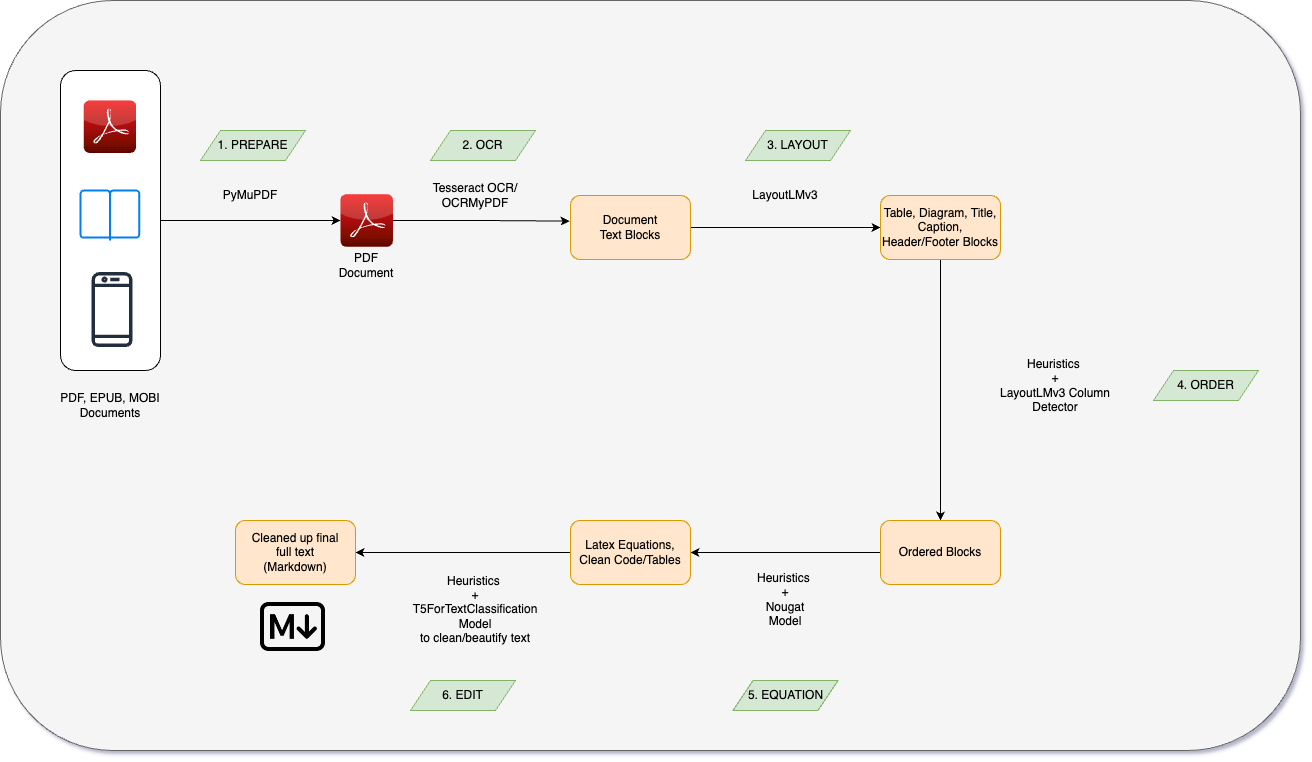 第 29 期分享的 PDF 转 Markdown 工具 Marker 短短两周时间已经逼近 5K star了。这篇文章解读了它的工作原理,介绍了它的 6 个阶段及所依赖到的工具(PyMuPDF、OCRMyPDF、Tesseract 等等)。